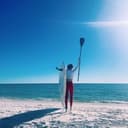 The video shows a pizza in a cardboard box placed on a white towel on a sandy beach. The camera pans up to reveal the ocean and sky. More about Grace Pizza Shakes Srb →