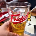 The video showcases a plate of fried chicken wings, potato wedges with ketchup, and a glass of beer on a table with a cartoon-themed tablecloth. The camera pans across the table, highlighting the food... More about Fricker's →