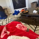 A young man with curly hair is energetically dancing in a restaurant setting. He is wearing a black t-shirt and patterned shorts. The background features a counter, shelves, and decorative elements li... More about Harbor Fish & Chips →