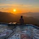 The video captures a sunset over a mountainous landscape with a graffiti-covered concrete surface in the foreground. The winding road below and the distant mountains create a scenic backdrop. More about Los Angeles International Airport →