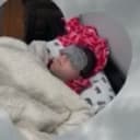 A car drives through a snowy nighttime landscape, with the camera capturing the scene from behind. As the vehicle moves, the camera pans right to reveal a person in dark clothing shoveling snow by the... More about Red Lobster →